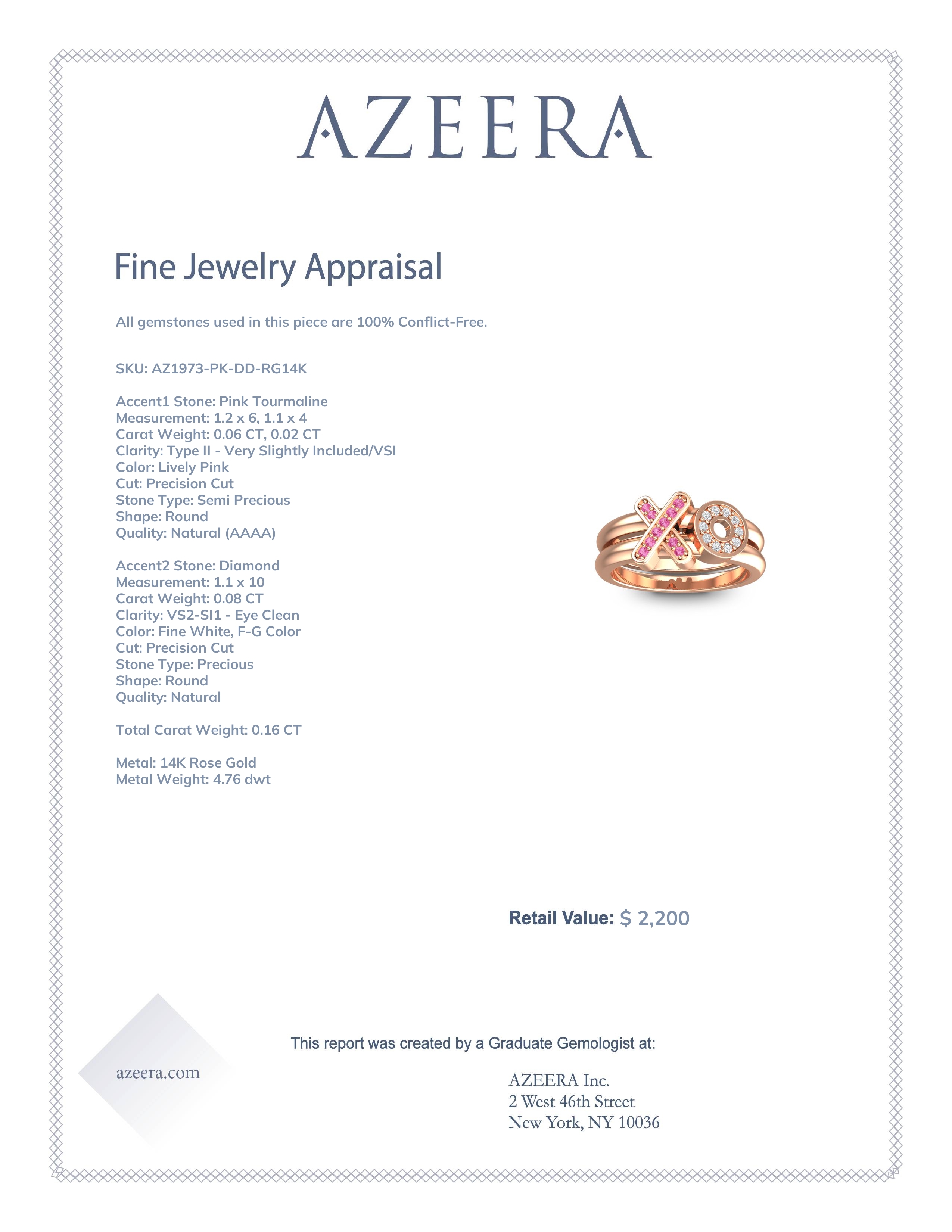 This Pink Tourmaline and Diamond ring is the perfect addition to you wardrobe. Not only do we use the top 10% of gemstones available, we also make everything right here in New York City. Our Fashion Rings can be added to your collection of dainty rings, or even to your collection of stacking rings. This Romantic Ring Features Round Brilliant Gems Of Your Choice in A Shared Prong Setting Around The X And O Patterns in The Center with Support From The Double Row Of Bands. Ditch the worry, embrace the shine with free shipping, returns, resizing and a lifetime warranty.