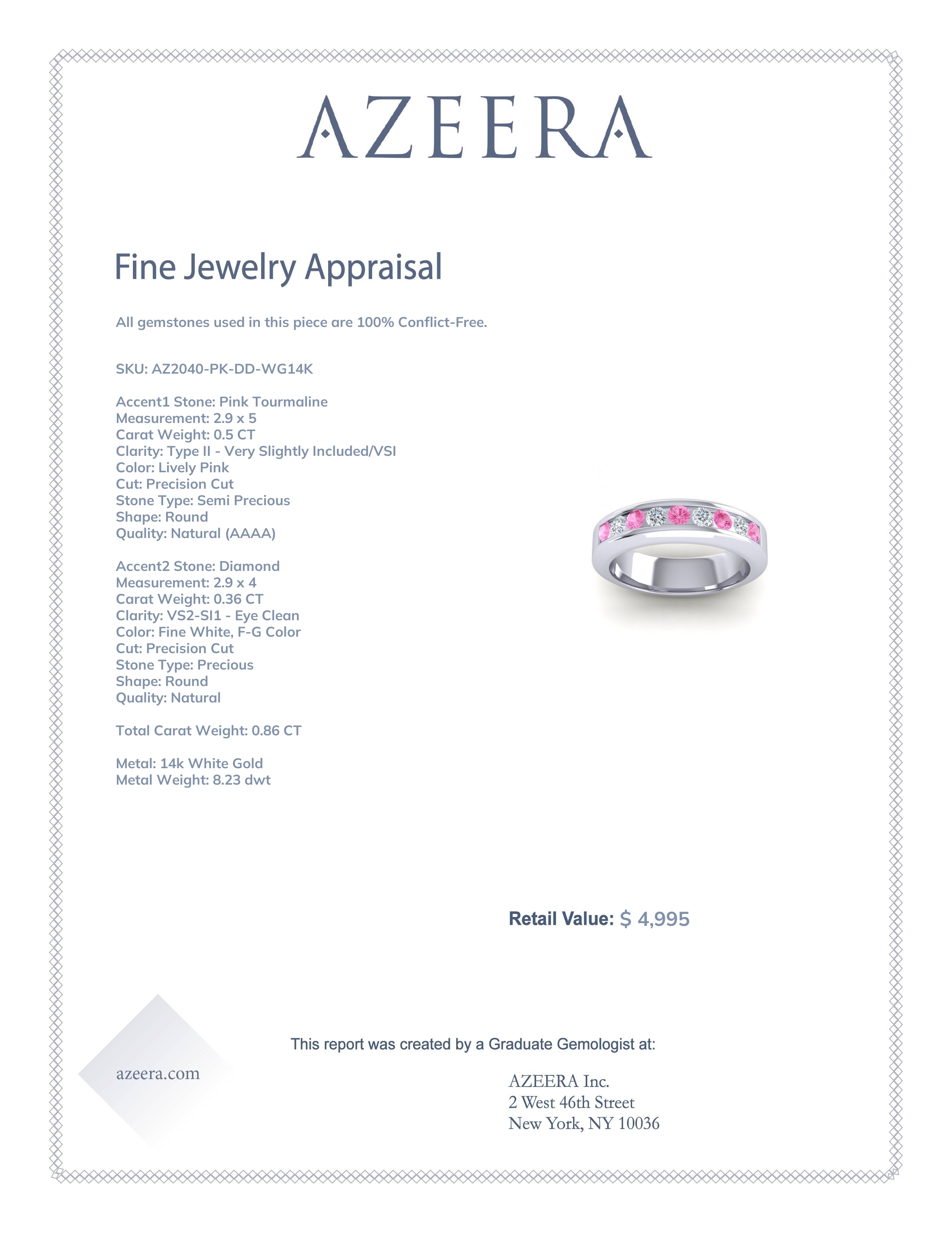 This mens Pink Tourmaline ring features AAAA gemstones, along with fine quality Diamond. This mens 14k White Gold ring will stand the test of time, mirroring the bond it symbolizes. This Stunning Band Holds 9 Channel Set Round Brilliant Gems Of Your Choice Around The Center Of The Ring with Tapered Edges Giving The Ring A More Distinguished Appearance. Unique mens wedding bands say what words can't - about his style, his passions, his love. Choose from a variety of gems and metals to make custom rings for men! Free shipping, returns, resizing, and a lifetime warranty make choosing this product easy.