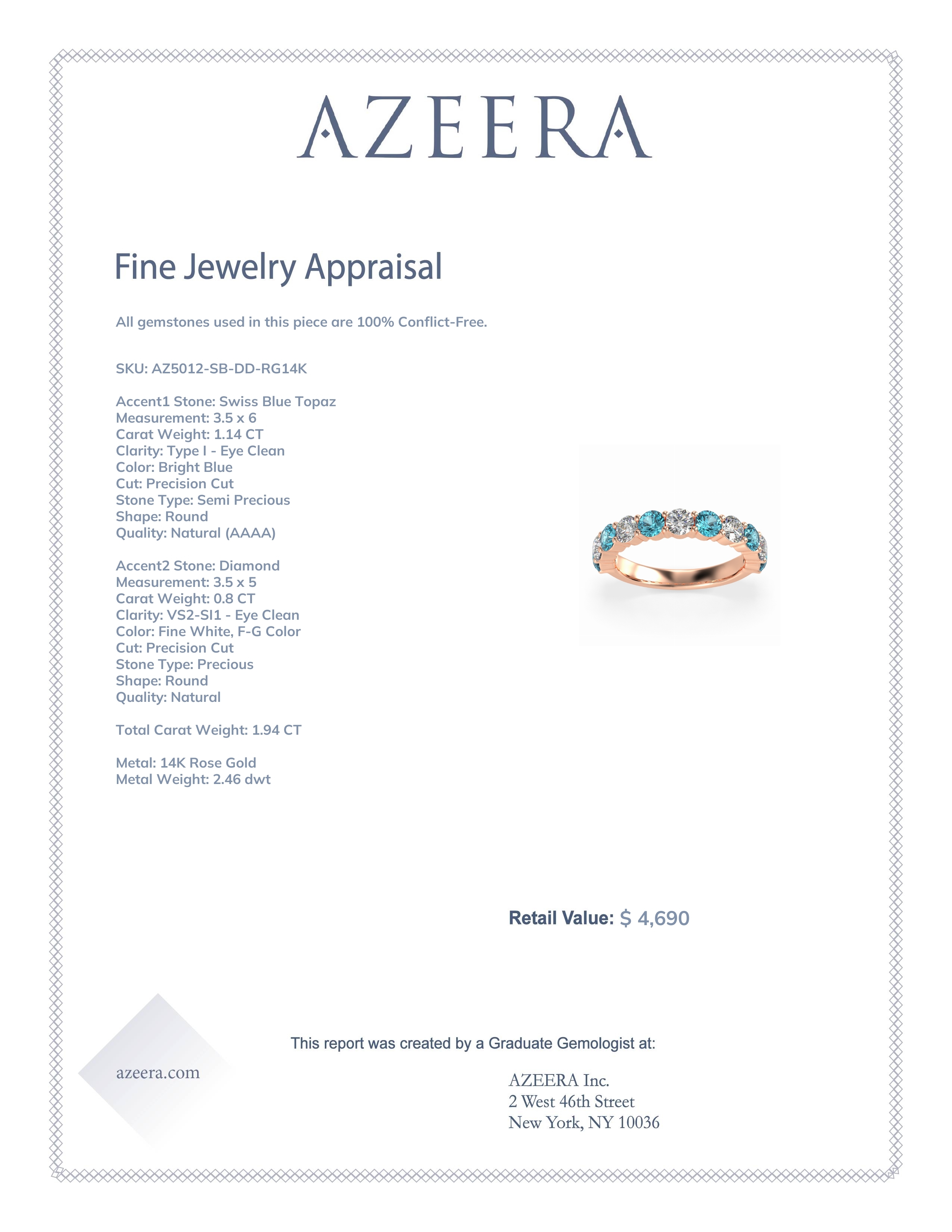 This Swiss Blue Topaz wedding ring is casted in 14K Rose Gold and set with fine quality Swiss Blue Topaz and Diamond. All of the gemstones we use are of the top 10% available, those found in fine quality boutiques across the world. This Swiss Blue Topaz wedding band can also be added to your collection of minimalist Swiss Blue Topaz rings. A Timeless And Elegant Three-quarter Eternity Band, Showcasing A Graceful Balance Of Sparkle And Simplicity. Free shipping, returns, resizing, and a lifetime warranty ensure you love your purchase.