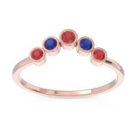 This Ruby and Blue Sapphire ring is the perfect addition to you wardrobe. Not only do we use the top 10% of gemstones available, we also make everything right here in New York City. Our Fashion Rings can be added to your collection of dainty rings, or even to your collection of stacking rings. This Ring Features Five Round Brilliant Gems Bezel Set in A Curved Ring Style. Ditch the worry, embrace the shine with free shipping, returns, resizing and a lifetime warranty.