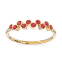This 18k Yellow Gold Ruby ring is the perfect addition to you collection of Fashion Rings. From boardroom to beach bonfire, this transcends the ordinary. This Ring Features Ten Round Brilliant Gems Bezel Set in An Offset Pattern. Customize And Build Your Own Gemstone Ring By Selecting The Gems And Metals Of Your Choice. Gone are the days of chunky statements and over-the-top sparkle. Today, people are gravitating towards the quiet confidence of minimalist jewelry. These pieces complement, rather than compete with, personal style, allowing individuality to shine through.