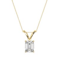 This Lab Diamond Classic Necklace is casted in 14k Yellow Gold. We use only exceptionally fine gemstones, truly on par with those found in the world's most exclusive boutiques and representing the top 10% available globally. Classic Pendant Showcasing A Single, Emerald-cut Stone with A Distinctive Split Bail. A Timeless And Refined Design. You'll get a complimentary 18-inch chain with every necklace. Plus, enjoy a 30-day, hassle-free return policy (we even cover return shipping!) and a Lifetime Warranty for peace of mind.