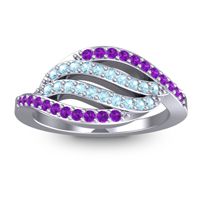 This Aquamarine and Amethyst ring is the perfect addition to you wardrobe. Not only do we use the top 10% of gemstones available, we also make everything right here in New York City. Our Fashion Rings can be added to your collection of dainty rings, or even to your collection of stacking rings. This Modern Ring Features Round Brilliant Gems Of Your Choice in A Shared Prong Setting Around The Multiple Arms Of The Swooping Wave Like Design. Ditch the worry, embrace the shine with free shipping, returns, resizing and a lifetime warranty.