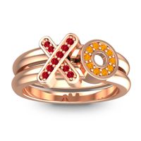 This Ruby and Citrine ring is the perfect addition to you wardrobe. Not only do we use the top 10% of gemstones available, we also make everything right here in New York City. Our Fashion Rings can be added to your collection of dainty rings, or even to your collection of stacking rings. This Romantic Ring Features Round Brilliant Gems Of Your Choice in A Shared Prong Setting Around The X And O Patterns in The Center with Support From The Double Row Of Bands. Ditch the worry, embrace the shine with free shipping, returns, resizing and a lifetime warranty.