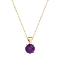 This Amethyst Classic Necklace is casted in 14k Yellow Gold. We use only exceptionally fine gemstones, truly on par with those found in the world's most exclusive boutiques and representing the top 10% available globally. Simple Solitaire Pendant Featuring A Single, Round-cut Stone in A Classic And Timeless Setting. You'll get a complimentary 18-inch chain with every necklace. Plus, enjoy a 30-day, hassle-free return policy (we even cover return shipping!) and a Lifetime Warranty for peace of mind.