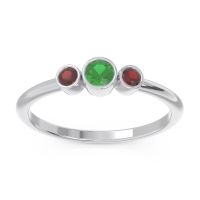 This Emerald and Garnet ring is the perfect addition to you wardrobe. Not only do we use the top 10% of gemstones available, we also make everything right here in New York City. Our Fashion Rings can be added to your collection of dainty rings, or even to your collection of stacking rings. This Ring Features Round Brilliant Gems Bezel Set in A Modern Slender Three Stone Setting. Ditch the worry, embrace the shine with free shipping, returns, resizing and a lifetime warranty.