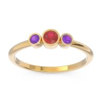 This Ruby and Amethyst ring is the perfect addition to you wardrobe. Not only do we use the top 10% of gemstones available, we also make everything right here in New York City. Our Fashion Rings can be added to your collection of dainty rings, or even to your collection of stacking rings. This Ring Features Round Brilliant Gems Bezel Set in A Modern Slender Three Stone Setting. Ditch the worry, embrace the shine with free shipping, returns, resizing and a lifetime warranty.