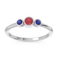 This Ruby and Blue Sapphire ring is the perfect addition to you wardrobe. Not only do we use the top 10% of gemstones available, we also make everything right here in New York City. Our Fashion Rings can be added to your collection of dainty rings, or even to your collection of stacking rings. This Ring Features Round Brilliant Gems Bezel Set in A Modern Slender Three Stone Setting. Ditch the worry, embrace the shine with free shipping, returns, resizing and a lifetime warranty.