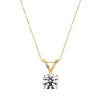 This Diamond Classic Necklace is casted in 14k Yellow Gold. We use only exceptionally fine gemstones, truly on par with those found in the world's most exclusive boutiques and representing the top 10% available globally. Lovely Pendant Presenting A Central, Round Stone Held By A Classic Prong Setting And Featuring A Split Bail. A Truly Versatile Piece. You'll get a complimentary 18-inch chain with every necklace. Plus, enjoy a 30-day, hassle-free return policy (we even cover return shipping!) and a Lifetime Warranty for peace of mind.