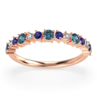 This 14K Rose Gold London Blue Topaz wedding ring features gemstones, along with fine quality Blue Sapphire and Diamond. We only use the top 10% of gemstones available. This women's ring can be worn as a London Blue Topaz wedding band, or even as an addition to your London Blue Topaz rings collection. This Half-eternity Women's Band Features A Playful, Star-like Pattern Composed Of Stones in Various Sizes. This product comes with Free Shipping, Free Returns, Free Resize and a lifetime warranty. Choose from a variety of gems and metals to make a truly unique custom band!.