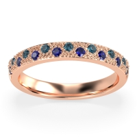 This Blue Sapphire wedding ring is casted in 18K Rose Gold and set with fine quality Blue Sapphire and London Blue Topaz. All of the gemstones we use are of the top 10% available, those found in fine quality boutiques across the world. This Blue Sapphire wedding band can also be added to your collection of minimalist Blue Sapphire rings. This Half-eternity Band Features Gemstones And Milgrain Accents, Creating A Sparkling, Starry Effect. Free shipping, returns, resizing, and a lifetime warranty ensure you love your purchase.