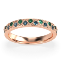 This London Blue Topaz wedding ring is casted in 14K Rose Gold and set with fine quality London Blue Topaz and Emerald. All of the gemstones we use are of the top 10% available, those found in fine quality boutiques across the world. This London Blue Topaz wedding band can also be added to your collection of minimalist London Blue Topaz rings. This Half-eternity Band Features Gemstones And Milgrain Accents, Creating A Sparkling, Starry Effect. Free shipping, returns, resizing, and a lifetime warranty ensure you love your purchase.