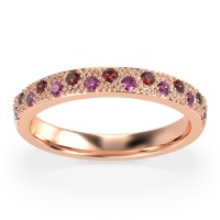 This Pink Tourmaline wedding ring is casted in 14K Rose Gold and set with fine quality Pink Tourmaline and Ruby. All of the gemstones we use are of the top 10% available, those found in fine quality boutiques across the world. This Pink Tourmaline wedding band can also be added to your collection of minimalist Pink Tourmaline rings. This Half-eternity Band Features Gemstones And Milgrain Accents, Creating A Sparkling, Starry Effect. Free shipping, returns, resizing, and a lifetime warranty ensure you love your purchase.