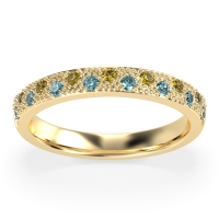 This Swiss Blue Topaz wedding ring is casted in 18k Yellow Gold and set with fine quality Swiss Blue Topaz and Citrine. All of the gemstones we use are of the top 10% available, those found in fine quality boutiques across the world. This Swiss Blue Topaz wedding band can also be added to your collection of minimalist Swiss Blue Topaz rings. This Half-eternity Band Features Gemstones And Milgrain Accents, Creating A Sparkling, Starry Effect. Free shipping, returns, resizing, and a lifetime warranty ensure you love your purchase.