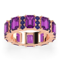 This Amethyst wedding ring is casted in 14K Rose Gold and set with fine quality Amethyst and Blue Sapphire. All of the gemstones we use are of the top 10% available, those found in fine quality boutiques across the world. This Amethyst wedding band can also be added to your collection of minimalist Amethyst rings. This Statement Band Features A Captivating Design Of Emerald-cut Stones Seperated with Rows Of Gems. Free shipping, returns, resizing, and a lifetime warranty ensure you love your purchase.