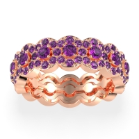 This Amethyst wedding ring is set with AAAA Amethyst, amongst the top 10% of material available. This ring can be casted in your choice of 9 metals. Amethyst rings can be worn as gemstone wedding rings, or can even be stacked with your other gemstone rings. This Eternity Band Features A Larger Center Stone Encircled By A Sparkling Halo, in A Repeating Pattern Going All The Way Around. Choose from a variety of gems and metals to make truly unique custom rings! Free shipping, returns, resizing, and a lifetime warranty make choosing this product easy.
