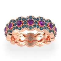 This London Blue Topaz wedding ring is casted in 14K Rose Gold and set with fine quality London Blue Topaz and Amethyst. All of the gemstones we use are of the top 10% available, those found in fine quality boutiques across the world. This London Blue Topaz wedding band can also be added to your collection of minimalist London Blue Topaz rings. This Eternity Band Features A Larger Center Stone Encircled By A Sparkling Halo, in A Repeating Pattern Going All The Way Around. Free shipping, returns, resizing, and a lifetime warranty ensure you love your purchase.