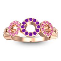 This Amethyst and Pink Tourmaline ring is the perfect addition to you wardrobe. Not only do we use the top 10% of gemstones available, we also make everything right here in New York City. Our Fashion Rings can be added to your collection of dainty rings, or even to your collection of stacking rings. This Bold Ring Features Round Brilliant Gems Of Your Choice in A Shared Prong Setting Over A Graduated Sequence Of Linked Circles. The Ample Negative Space Between Rings Provides Depth And A Pleasant Contrast To The Piece. Ditch the worry, embrace the shine with free shipping, returns, resizing and a lifetime warranty.