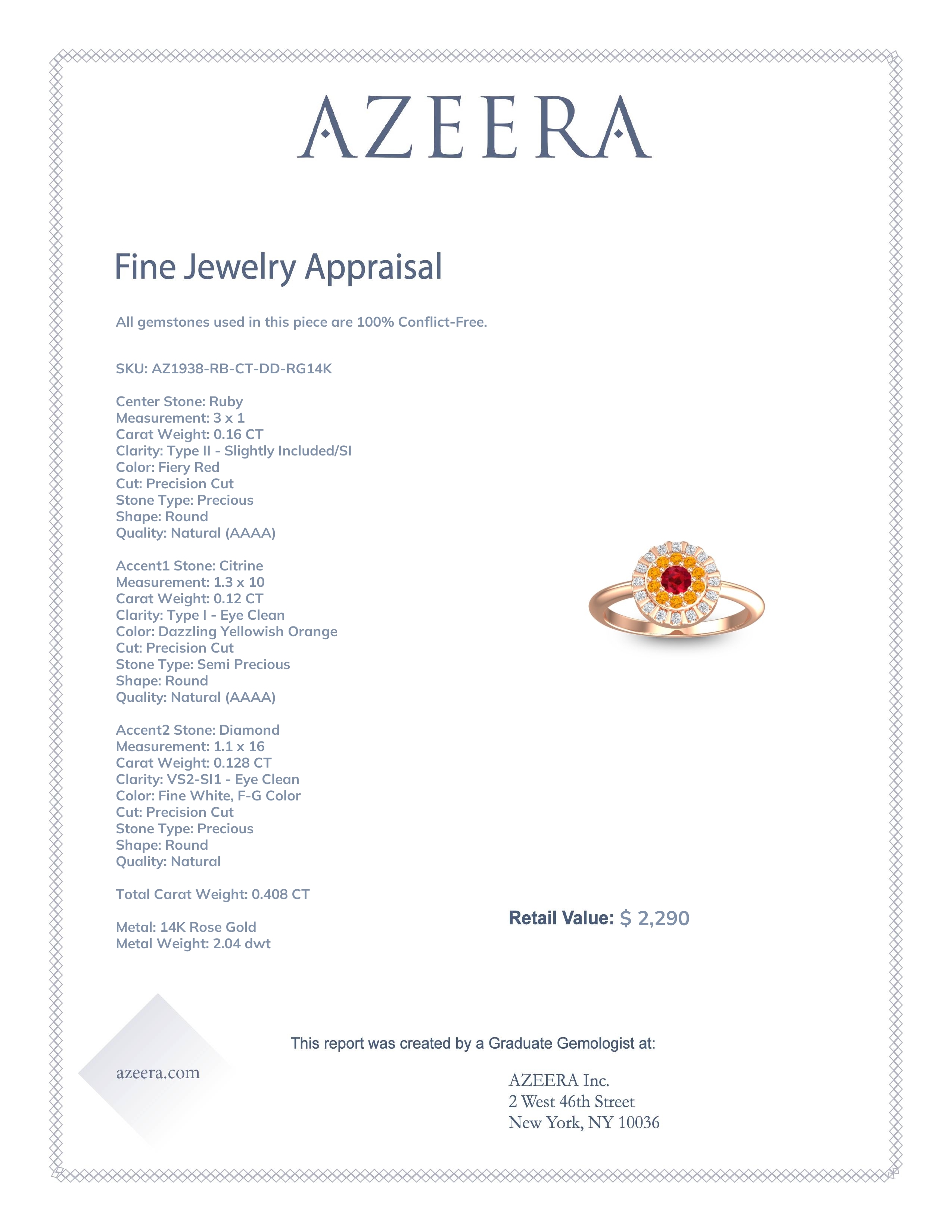 Embrace everyday sparkle and unleash your inner icon with our customizable Fashion Rings. This ring features Ruby, along with Citrine and Diamond. We only use the top 10% of gemstone material available, amongst those found in high end boutiques. This Fashion Ring is casted in 14K Rose Gold. This Unique Ring Features 1 Round Brilliant Gem Of Your Choice Surrounded By A Halo Of Rounds in A Shared Prong Setting And An Additional Halo Of Rounds in A Channel Setting. Whether you are looking for simple rings or dainty rings, this ring ticks all the boxes, this ring isn't just an accessory, it's a conversation starter.