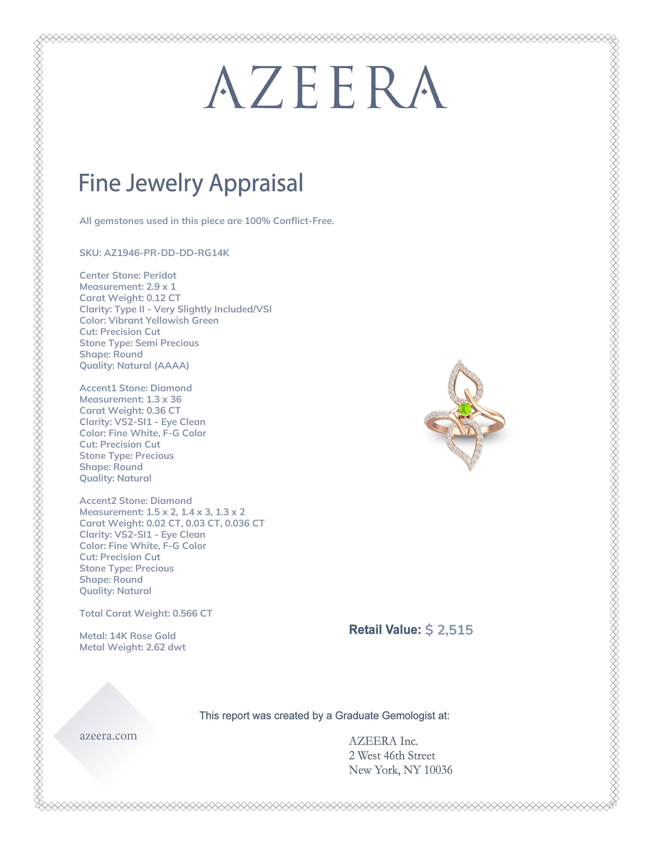 This Peridot and Diamond ring is the perfect addition to you wardrobe. Not only do we use the top 10% of gemstones available, we also make everything right here in New York City. Our Fashion Rings can be added to your collection of dainty rings, or even to your collection of stacking rings. This Nature inspired Ring Features 1 Round Brilliant Gem Of Your Choice Between Two Leaf Like Accents with Round Brilliant Gems in A Shared Prong Setting Around The Design. Ditch the worry, embrace the shine with free shipping, returns, resizing and a lifetime warranty.