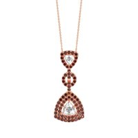 This Diamond and Garnet Necklace is casted in 14K Rose Gold. This Women’s Fashion necklace features exceptionally fine gemstones, on par with those found in the world's most exclusive boutiques and among the top 10% available globally. intriguing Pendant with A Distinctive Shovel-like Silhouette, Showcasing A Vibrant Trillion-cut Stone As Its Focal Point. The Gem Is Further Enhanced By A Double Halo Of Shimmering Accents. This necklace comes with a complimentary 18-inch chain. Enjoy the confidence of our 30-day, stress-free return policy—with return shipping fully covered. Each piece is also accompanied by a Lifetime Warranty, ensuring lasting beauty and peace of mind.
