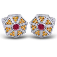 These personalized cufflinks feature Ruby and Citrine. We only use the top 10% of gemstones available, every facet meticulously placed, they create a masterpiece of radiance that captivates the senses. This Pair Of Cufflinks Features A Gemstone And Metal Design That Isn’t Afraid To Be Bold And Distinguished. in A Heptagon Shaped Face, Your Gems Sit in A Partition And Are Accented with One Gem in The Center. Each Cufflink Hosts 21 Brilliant Round Gems in A Pave Setting And One Large Brilliant Round Gem in A Bezel Setting Of Your Choice Over The Face Of The Piece. For the one who appreciates the finer things, these mens cufflinks are an unspoken badge of distinction. Choose from a variety of gems to make a truly unique pair of custom cufflinks. Enjoy free shipping, free returns and a lifetime warranty.
