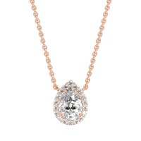 This Lab Diamond Halo Necklace is casted in 18K Rose Gold. We use only exceptionally fine gemstones, truly on par with those found in the world's most exclusive boutiques and representing the top 10% available globally. Classic Halo Pendant Featuring A Pear-shaped Center Stone Embraced By A Timeless Halo Of Smaller Stones. A Refined And Elegant Design. You'll get a complimentary 18-inch chain with every necklace. Plus, enjoy a 30-day, hassle-free return policy (we even cover return shipping!) and a Lifetime Warranty for peace of mind.
