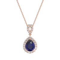 This Blue Sapphire and Lab Diamond Necklace is casted in 18K Rose Gold. This Women’s Halo necklace features exceptionally fine gemstones, on par with those found in the world's most exclusive boutiques and among the top 10% available globally. Elegant Tear Drop Pendant Featuring A Central, Pear-shaped Stone Surrounded By A Halo Of Smaller Stones. The Bail Is Also Embellished with Delicate Stone Accents. This necklace comes with a complimentary 18-inch chain. Enjoy the confidence of our 30-day, stress-free return policy—with return shipping fully covered. Each piece is also accompanied by a Lifetime Warranty, ensuring lasting beauty and peace of mind.