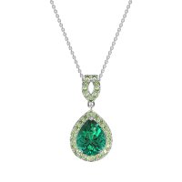 This Emerald and Peridot Necklace is casted in 14k White Gold. This Women’s Halo necklace features exceptionally fine gemstones, on par with those found in the world's most exclusive boutiques and among the top 10% available globally. Elegant Tear Drop Pendant Featuring A Central, Pear-shaped Stone Surrounded By A Halo Of Smaller Stones. The Bail Is Also Embellished with Delicate Stone Accents. This necklace comes with a complimentary 18-inch chain. Enjoy the confidence of our 30-day, stress-free return policy—with return shipping fully covered. Each piece is also accompanied by a Lifetime Warranty, ensuring lasting beauty and peace of mind.