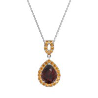 This Lab Ruby and Citrine Necklace is casted in 14k White Gold. This Women’s Halo necklace features exceptionally fine gemstones, on par with those found in the world's most exclusive boutiques and among the top 10% available globally. Elegant Tear Drop Pendant Featuring A Central, Pear-shaped Stone Surrounded By A Halo Of Smaller Stones. The Bail Is Also Embellished with Delicate Stone Accents. This necklace comes with a complimentary 18-inch chain. Enjoy the confidence of our 30-day, stress-free return policy—with return shipping fully covered. Each piece is also accompanied by a Lifetime Warranty, ensuring lasting beauty and peace of mind.