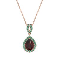 This Ruby and Emerald Necklace is casted in 18K Rose Gold. This Women’s Halo necklace features exceptionally fine gemstones, on par with those found in the world's most exclusive boutiques and among the top 10% available globally. Elegant Tear Drop Pendant Featuring A Central, Pear-shaped Stone Surrounded By A Halo Of Smaller Stones. The Bail Is Also Embellished with Delicate Stone Accents. This necklace comes with a complimentary 18-inch chain. Enjoy the confidence of our 30-day, stress-free return policy—with return shipping fully covered. Each piece is also accompanied by a Lifetime Warranty, ensuring lasting beauty and peace of mind.