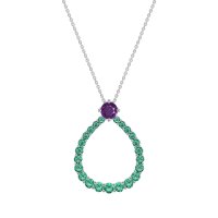 This Amethyst and Emerald Necklace is casted in 14k White Gold. This Women’s Fashion necklace features exceptionally fine gemstones, on par with those found in the world's most exclusive boutiques and among the top 10% available globally. A Modern Pendant Featuring A Teardrop-shaped Halo Of Stones That Gradually increase in Size. A Single, Round Stone Is Delicately Set At The Apex. This necklace comes with a complimentary 18-inch chain. Enjoy the confidence of our 30-day, stress-free return policy—with return shipping fully covered. Each piece is also accompanied by a Lifetime Warranty, ensuring lasting beauty and peace of mind.