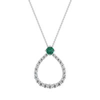 This Emerald and Lab Diamond Necklace is casted in 14k White Gold. This Women’s Fashion necklace features exceptionally fine gemstones, on par with those found in the world's most exclusive boutiques and among the top 10% available globally. A Modern Pendant Featuring A Teardrop-shaped Halo Of Stones That Gradually increase in Size. A Single, Round Stone Is Delicately Set At The Apex. This necklace comes with a complimentary 18-inch chain. Enjoy the confidence of our 30-day, stress-free return policy—with return shipping fully covered. Each piece is also accompanied by a Lifetime Warranty, ensuring lasting beauty and peace of mind.