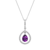This Amethyst and Lab Diamond Necklace is casted in 14k White Gold. This Women’s Fashion necklace features exceptionally fine gemstones, on par with those found in the world's most exclusive boutiques and among the top 10% available globally. Captivating Pendant Showcasing A Pear-shaped Center Stone Framed By A Large Halo. This necklace comes with a complimentary 18-inch chain. Enjoy the confidence of our 30-day, stress-free return policy—with return shipping fully covered. Each piece is also accompanied by a Lifetime Warranty, ensuring lasting beauty and peace of mind.