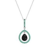 This Black Onyx and Emerald Necklace is casted in 14k White Gold. This Women’s Fashion necklace features exceptionally fine gemstones, on par with those found in the world's most exclusive boutiques and among the top 10% available globally. Captivating Pendant Showcasing A Pear-shaped Center Stone Framed By A Large Halo. This necklace comes with a complimentary 18-inch chain. Enjoy the confidence of our 30-day, stress-free return policy—with return shipping fully covered. Each piece is also accompanied by a Lifetime Warranty, ensuring lasting beauty and peace of mind.