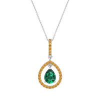 This Emerald and Citrine Necklace is casted in 14k White Gold. This Women’s Fashion necklace features exceptionally fine gemstones, on par with those found in the world's most exclusive boutiques and among the top 10% available globally. Captivating Pendant Showcasing A Pear-shaped Center Stone Framed By A Large Halo. This necklace comes with a complimentary 18-inch chain. Enjoy the confidence of our 30-day, stress-free return policy—with return shipping fully covered. Each piece is also accompanied by a Lifetime Warranty, ensuring lasting beauty and peace of mind.