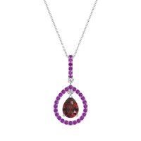 This Ruby and Amethyst Necklace is casted in 14k White Gold. This Women’s Fashion necklace features exceptionally fine gemstones, on par with those found in the world's most exclusive boutiques and among the top 10% available globally. Captivating Pendant Showcasing A Pear-shaped Center Stone Framed By A Large Halo. This necklace comes with a complimentary 18-inch chain. Enjoy the confidence of our 30-day, stress-free return policy—with return shipping fully covered. Each piece is also accompanied by a Lifetime Warranty, ensuring lasting beauty and peace of mind.