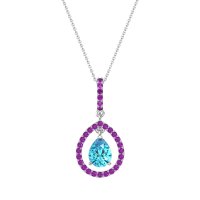 This Swiss Blue Topaz and Amethyst Necklace is casted in 14k White Gold. This Women’s Fashion necklace features exceptionally fine gemstones, on par with those found in the world's most exclusive boutiques and among the top 10% available globally. Captivating Pendant Showcasing A Pear-shaped Center Stone Framed By A Large Halo. This necklace comes with a complimentary 18-inch chain. Enjoy the confidence of our 30-day, stress-free return policy—with return shipping fully covered. Each piece is also accompanied by a Lifetime Warranty, ensuring lasting beauty and peace of mind.