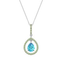 This Swiss Blue Topaz and Peridot Necklace is casted in 14k White Gold. This Women’s Fashion necklace features exceptionally fine gemstones, on par with those found in the world's most exclusive boutiques and among the top 10% available globally. Captivating Pendant Showcasing A Pear-shaped Center Stone Framed By A Large Halo. This necklace comes with a complimentary 18-inch chain. Enjoy the confidence of our 30-day, stress-free return policy—with return shipping fully covered. Each piece is also accompanied by a Lifetime Warranty, ensuring lasting beauty and peace of mind.