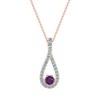 This Amethyst and Aquamarine Necklace is casted in 14K Rose Gold. This Women’s Fashion necklace features exceptionally fine gemstones, on par with those found in the world's most exclusive boutiques and among the top 10% available globally. Elegant Open Teardrop Pendant Featuring A Central Round Stone. The Delicate Frame Is Adorned with Numerous Small, Round Stones, Adding A Touch Of Sparkle. This necklace comes with a complimentary 18-inch chain. Enjoy the confidence of our 30-day, stress-free return policy—with return shipping fully covered. Each piece is also accompanied by a Lifetime Warranty, ensuring lasting beauty and peace of mind.