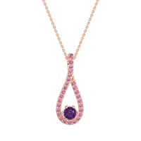 This Amethyst and Pink Tourmaline Necklace is casted in 14K Rose Gold. This Women’s Fashion necklace features exceptionally fine gemstones, on par with those found in the world's most exclusive boutiques and among the top 10% available globally. Elegant Open Teardrop Pendant Featuring A Central Round Stone. The Delicate Frame Is Adorned with Numerous Small, Round Stones, Adding A Touch Of Sparkle. This necklace comes with a complimentary 18-inch chain. Enjoy the confidence of our 30-day, stress-free return policy—with return shipping fully covered. Each piece is also accompanied by a Lifetime Warranty, ensuring lasting beauty and peace of mind.