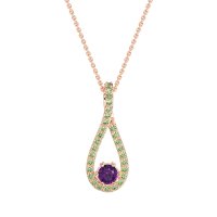 This Amethyst and Peridot Necklace is casted in 14K Rose Gold. This Women’s Fashion necklace features exceptionally fine gemstones, on par with those found in the world's most exclusive boutiques and among the top 10% available globally. Elegant Open Teardrop Pendant Featuring A Central Round Stone. The Delicate Frame Is Adorned with Numerous Small, Round Stones, Adding A Touch Of Sparkle. This necklace comes with a complimentary 18-inch chain. Enjoy the confidence of our 30-day, stress-free return policy—with return shipping fully covered. Each piece is also accompanied by a Lifetime Warranty, ensuring lasting beauty and peace of mind.