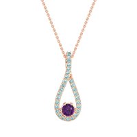 This Amethyst and Swiss Blue Topaz Necklace is casted in 14K Rose Gold. This Women’s Fashion necklace features exceptionally fine gemstones, on par with those found in the world's most exclusive boutiques and among the top 10% available globally. Elegant Open Teardrop Pendant Featuring A Central Round Stone. The Delicate Frame Is Adorned with Numerous Small, Round Stones, Adding A Touch Of Sparkle. This necklace comes with a complimentary 18-inch chain. Enjoy the confidence of our 30-day, stress-free return policy—with return shipping fully covered. Each piece is also accompanied by a Lifetime Warranty, ensuring lasting beauty and peace of mind.
