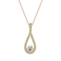 This Diamond and Peridot Necklace is casted in 14K Rose Gold. This Women’s Fashion necklace features exceptionally fine gemstones, on par with those found in the world's most exclusive boutiques and among the top 10% available globally. Elegant Open Teardrop Pendant Featuring A Central Round Stone. The Delicate Frame Is Adorned with Numerous Small, Round Stones, Adding A Touch Of Sparkle. This necklace comes with a complimentary 18-inch chain. Enjoy the confidence of our 30-day, stress-free return policy—with return shipping fully covered. Each piece is also accompanied by a Lifetime Warranty, ensuring lasting beauty and peace of mind.