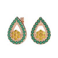 These Citrine earrings and made in 18K Rose Gold with top quality Natural Citrine and Emerald gemstones. A Timeless Design With A Brilliant Contemporary Twist, These Teardrop Halo Cluster Earrings Offer Captivating Sparkle. They Are Secured Comfortably With A Pushback Closure. Free shipping, returns, and a lifetime warranty make luxury worry-free