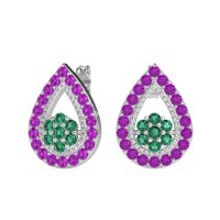 These Emerald earrings and made in 18k White Gold with top quality Natural Emerald and Amethyst gemstones. A Timeless Design With A Brilliant Contemporary Twist, These Teardrop Halo Cluster Earrings Offer Captivating Sparkle. They Are Secured Comfortably With A Pushback Closure. Free shipping, returns, and a lifetime warranty make luxury worry-free