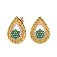 These Emerald earrings and made in 14K Rose Gold with top quality Natural Emerald and Citrine gemstones. A Timeless Design With A Brilliant Contemporary Twist, These Teardrop Halo Cluster Earrings Offer Captivating Sparkle. They Are Secured Comfortably With A Pushback Closure. Free shipping, returns, and a lifetime warranty make luxury worry-free