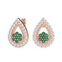 These Emerald earrings and made in 18K Rose Gold with top quality Emerald and Lab Diamond gemstones. A Timeless Design With A Brilliant Contemporary Twist, These Teardrop Halo Cluster Earrings Offer Captivating Sparkle. They Are Secured Comfortably With A Pushback Closure. Free shipping, returns, and a lifetime warranty make luxury worry-free