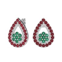 These Emerald earrings and made in 18k White Gold with top quality Natural Emerald and Ruby gemstones. A Timeless Design With A Brilliant Contemporary Twist, These Teardrop Halo Cluster Earrings Offer Captivating Sparkle. They Are Secured Comfortably With A Pushback Closure. Free shipping, returns, and a lifetime warranty make luxury worry-free