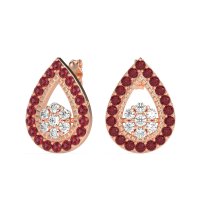 These Lab Diamond earrings and made in 18K Rose Gold with top quality Lab Diamond and Ruby gemstones. A Timeless Design With A Brilliant Contemporary Twist, These Teardrop Halo Cluster Earrings Offer Captivating Sparkle. They Are Secured Comfortably With A Pushback Closure. Free shipping, returns, and a lifetime warranty make luxury worry-free